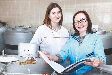 Своими практическими знаниями Лариса Лолиевна охотно делится с ведущим зоотехником Екатериной Балдичевой, что трудится в своей должности третий месяц - этой весной девушка закончила Вологодскую государственную молочно-хозяйственную академию. Говорит, что на выбор места работы повлияли хорошие отзывы о деятельности племпредприятия. Полностью устроило ее и предложение по заработной плате. Не менее важным, чем материальный стимул, оказался и микроклимат в коллективе. По словам Екатерины, здесь ей комфортно и интересно.